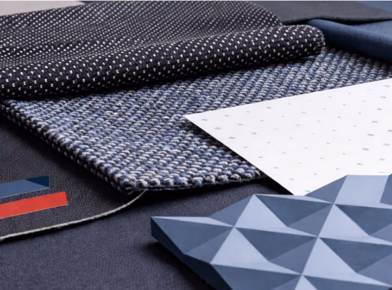 Inspired by the notion that blue is the warmest colour, the Delta interior is a restful, inviting sanctuary. We curated a palette of deeply tactile textiles from intricate woven knits to soft pebbled grains that wrap the cabin in layered comfort. By pairing these rich fabrics with geometric hard finishes inspired by the Delta icon, we’ve created a distinctive setting that emotes a soulful sense of warmth.
