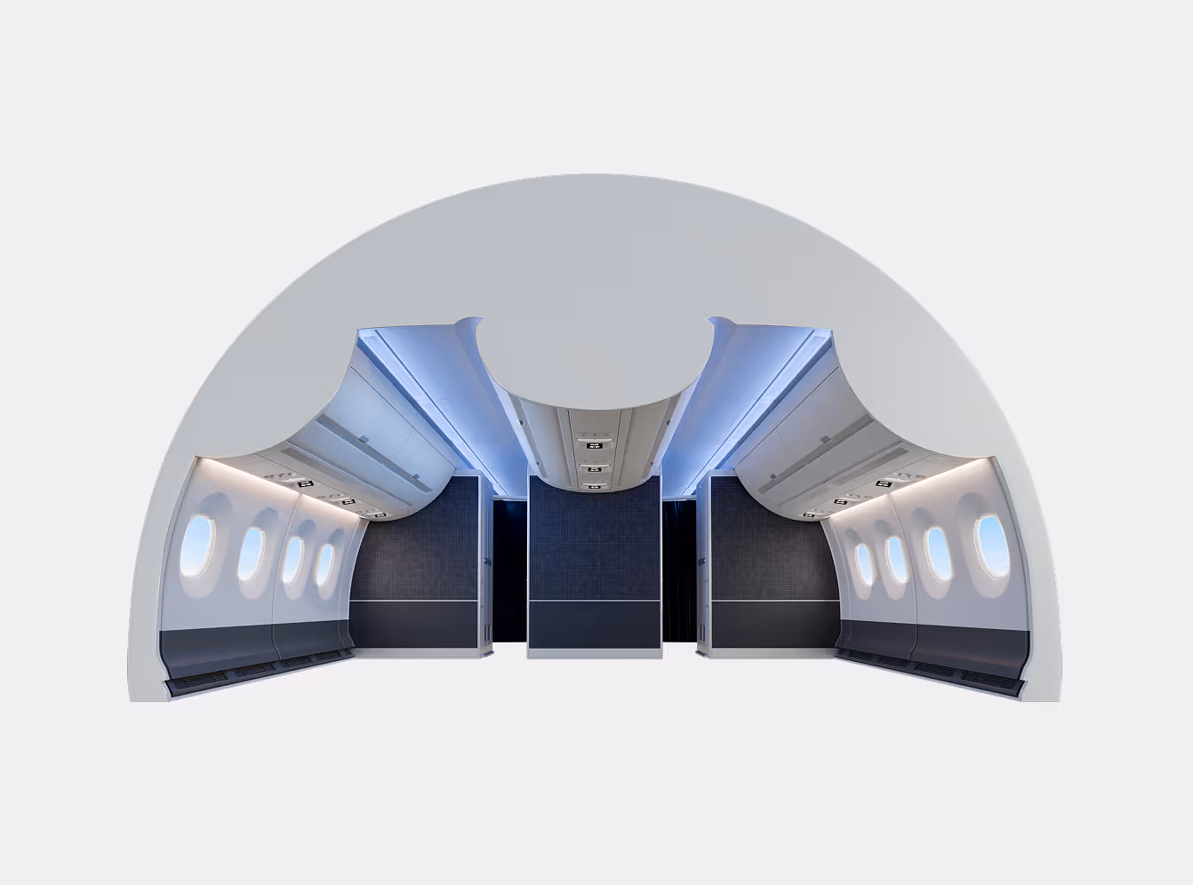 Our adaptive lighting blends indigo and amber to mimic the natural sky, washing the cabin in a signature glow. This seamless system balances clarity with an inviting warmth, accentuating our tactile materials to create a restful, rhythmic atmosphere that breathes with the traveler.